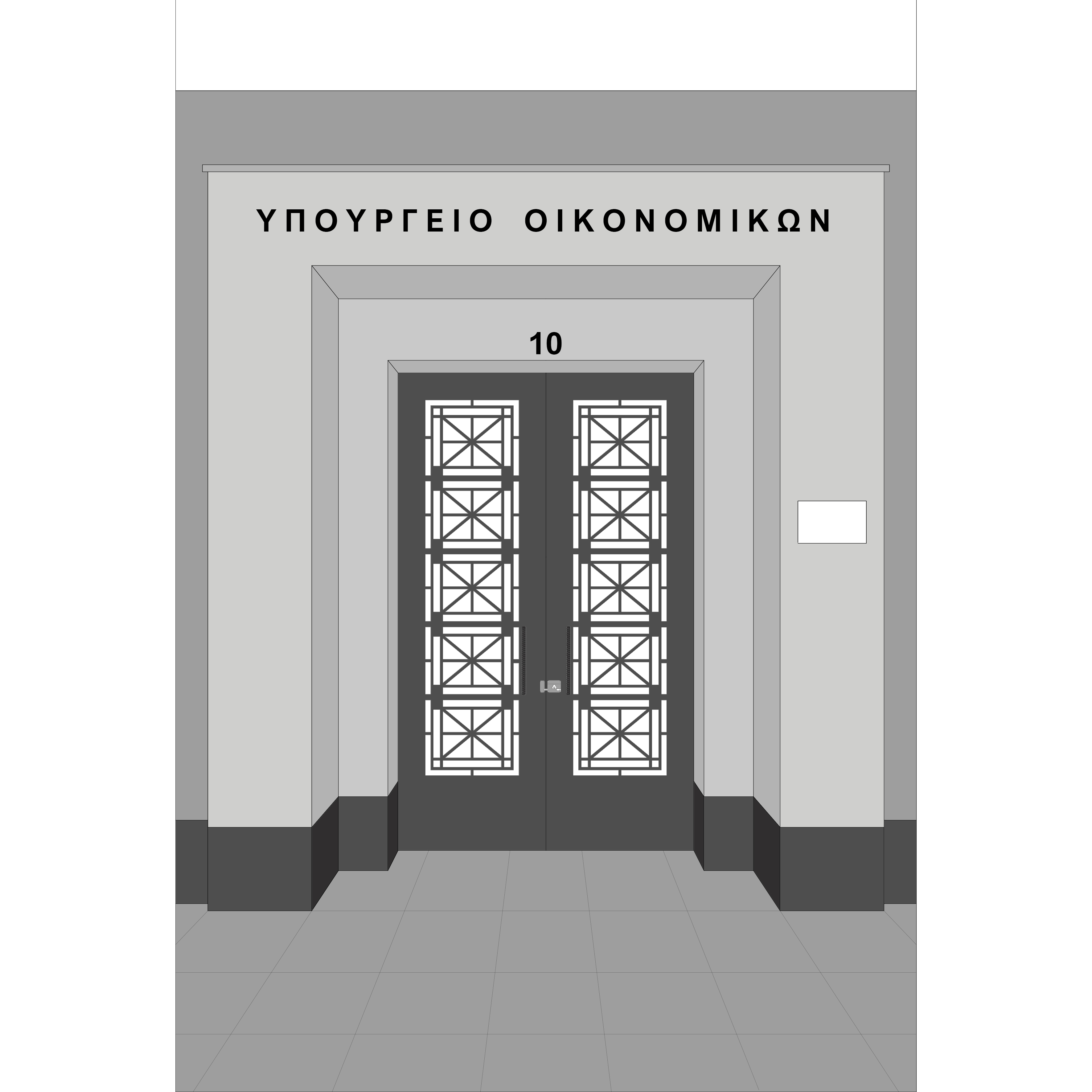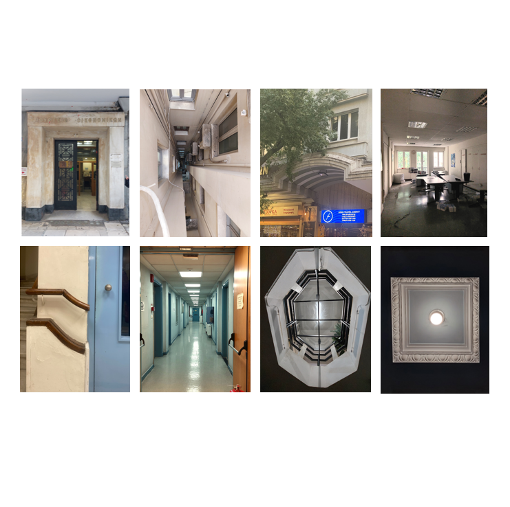 The Ministry of Economy and Finance is located at 10 Karagiorgi Servias Street and belongs to Naval Share Fund and occupies a total of 6770.82 square meters ( m2). It is a work of renowned architecture by the important architect of the period, the refined Vassilios Tsagris (1882-1941) and was constructed between 1938 and 1945 and was originally intended as a leper hospital. The building consists of two basement floors, the ground floor, which houses a gallery with shops, and eight typical floors, which are used entirely by the ministry's offices. The interior is characterized by long, narrow corridors, on either side of which the stacked office rooms unfold, and the main vertical movement is carried out by the imposing marble staircase.
