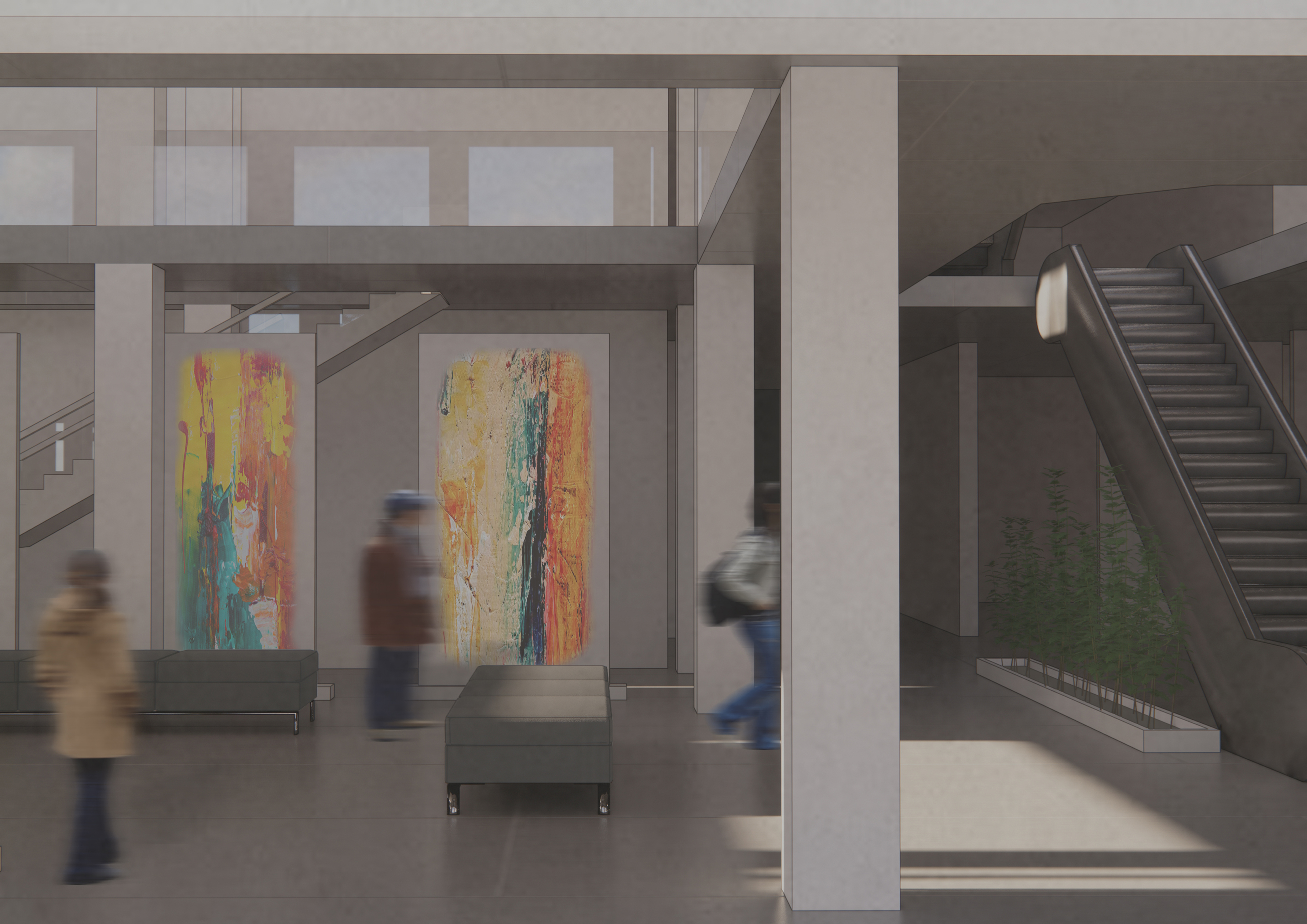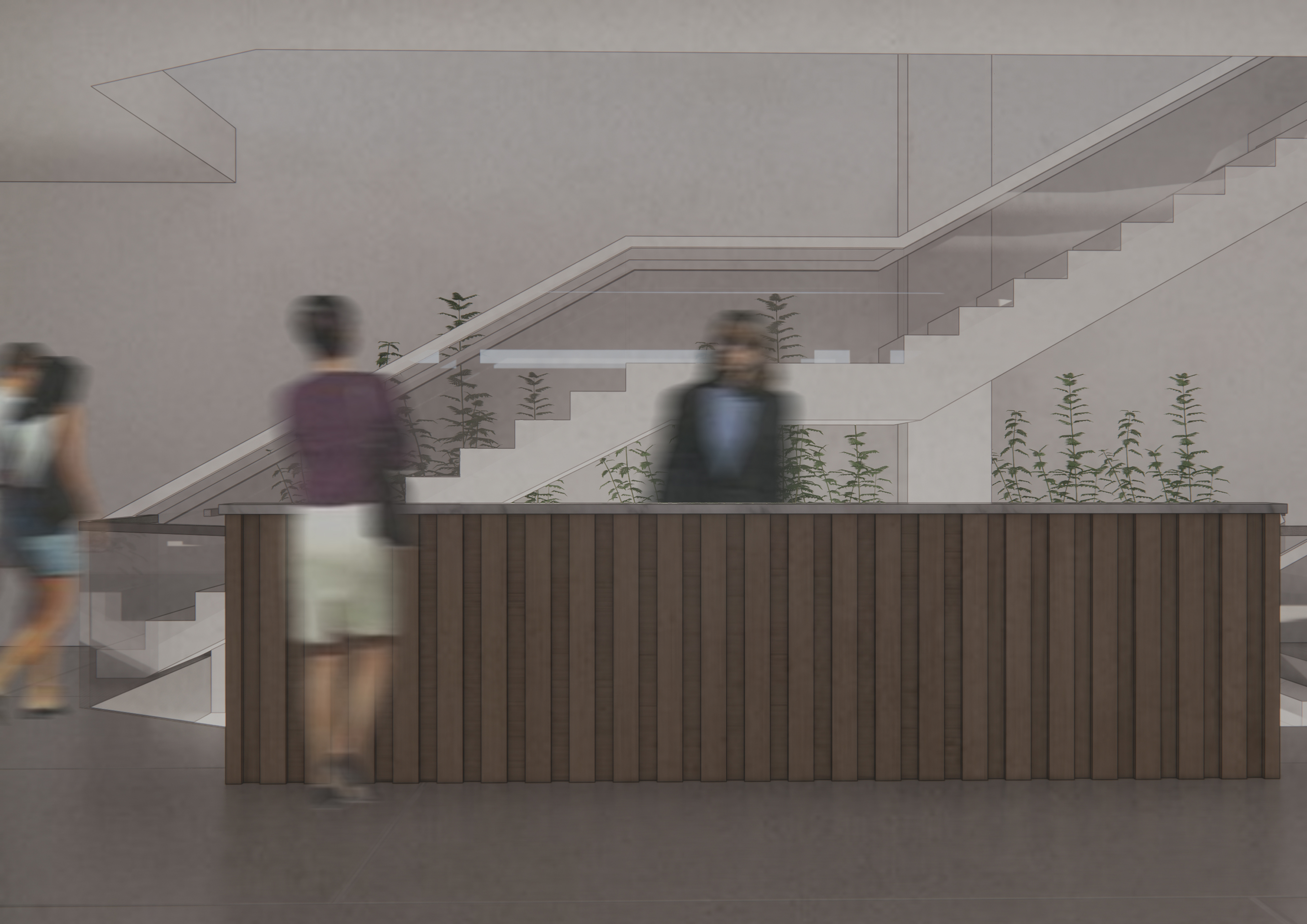 In our intervention we change little or no the external appearance / form of the building while our concern is the functional redefinition of the space. We envision a space with strong cultural significance. Considering the location of the building on the university street and close to the main building of the Bank of Greece, a smaller building of the Bank and the Numismatic Museum, we choose to design the Treasury of Greece which will store 47% of the country's gold. The building will be composed of the gold vaults , exhibition spaces, information spaces, offices, control center, half-time residences and an observation deck on the fifth floor with utilization of the location and the goddess ( Acropolis, Lycabettus , Trilogy ). The aim is to alternate spaces and functions and increase mobility in the building. For these reasons we make the ground floor more perforated with large openings and with a fusion of the ground floor with the mezzanine, creating transitional spaces and double heights making the tour of the space an experience for the visitor and giving a new dimension to the space.