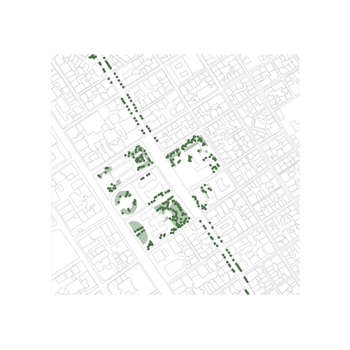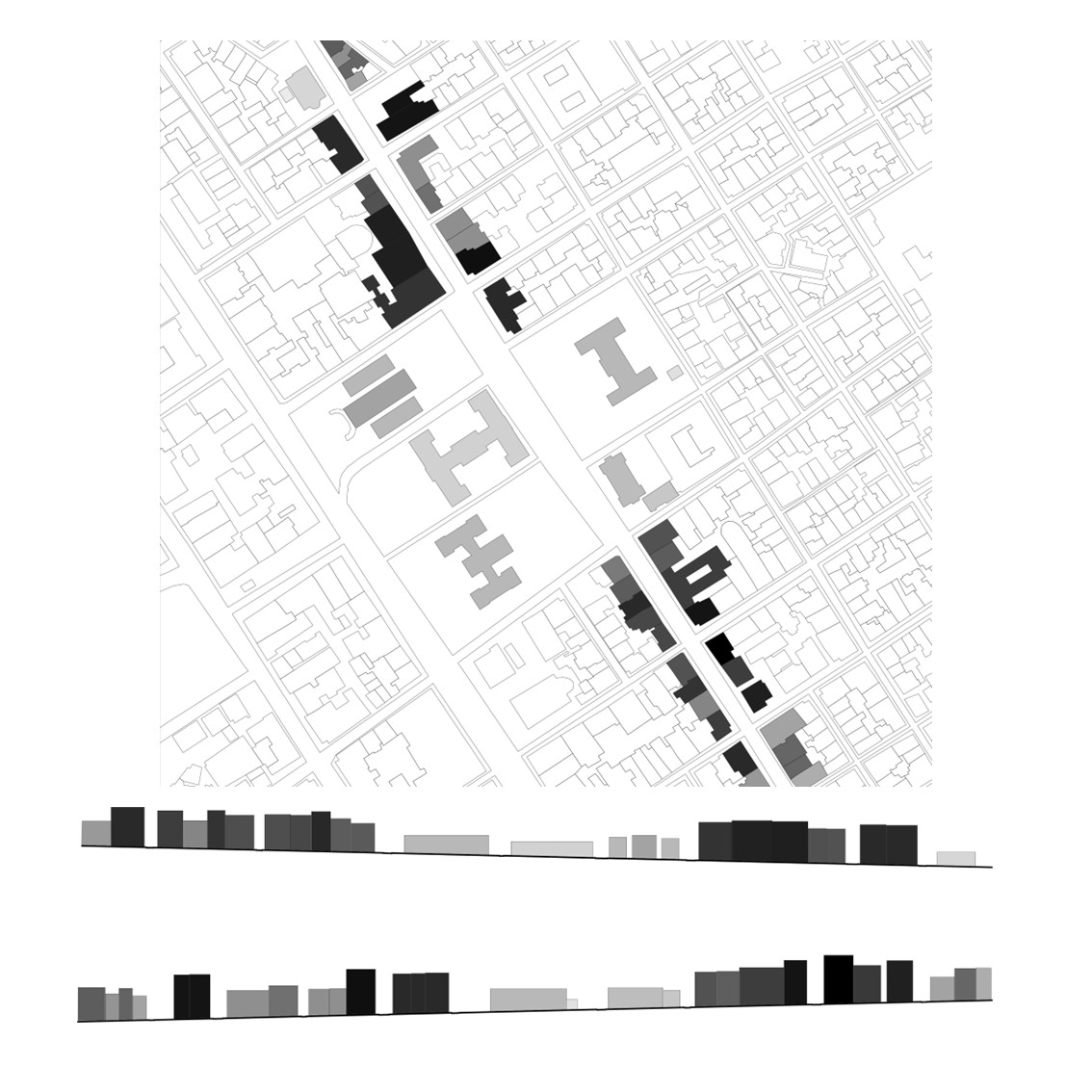 Researchers: Chrysostomos Bantis, Eleni KolliαOur study area was Akademias Street, where we were particularly impressed by the area of the Athens Trilogy. There, we observed the stark contrast between the open space within the dense built urban fabric and the public character it creates with this condition. Another point of observation was the height difference between the buildings of the Trilogy and the surrounding newer polikatoikia buildings, which acted as a frame for the significant, the admirable. These newer buildings are primarily office buildings, though we also identified some listed interwar and
